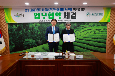 | 보성군은 보성아산병원과 중증환자 원스톱 진료 연계 업무협약을 체결했다.(사진 왼쪽부터 김철우 보성군수, 최병진 보성아산병원장) |
