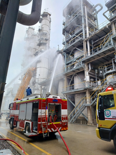 불은 용접 준비 중 열교환기 후단 배관에서 용매가 누출돼 자연 발화한 것으로 추정하고 있다.