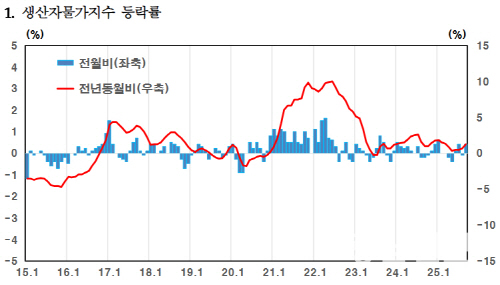 공산품(0.4%)에서는 컴퓨터·전자·광학기기(2.3%)와 1차금속제품(1.1%)이 올랐지만 석탄 및 석유제품(3.7%)이 감소했다.