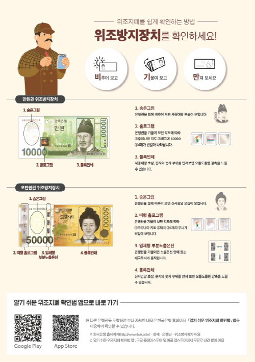 한은 관계자는 “위조지폐 발견 건수가 감소세인 가운데 온라인으로 쉽게 구할 수 있는 페이크머니를 위조지폐처럼 사용하는 시도가 늘어나 피해 예방을 위해 노력할 계획이다”고 설명했다.