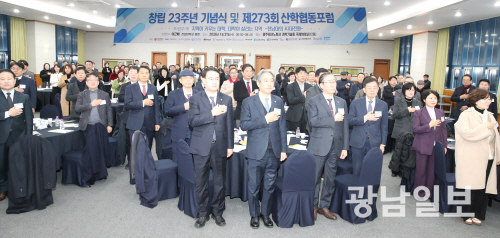 | (사)한국산학협동연구원은 최근 광주테크노파크 과학기술동 국제회의실에서 회원과 지역 학계, 기관, 단체 대표 등 130여명이 참석한 가운데 창립23주년 기념식 및 제273회 산하협동포럼을 개최했다. |