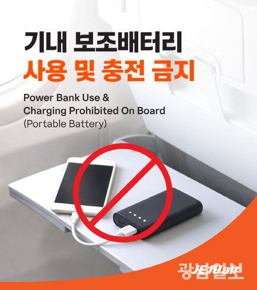 제주항공 관계자는 “국내외에서 보조배터리로 인한 화재가 연이어 발생함에 따라 기내 화재 위험을 줄이기 위한 조치로 보조배터리의 기내사용을 금지하게 됐다”며 “안전한 여행을 위해 모바일 기기는 탑승 전에 충분히 충전해 주길 바란다”고 말했다.