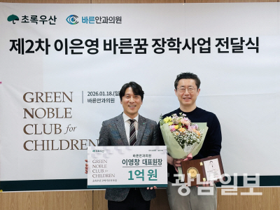 초록우산 광주지역본부는 21일 바른안과의원 이영창 대표원장으로부터 2차 ‘이은영 바른꿈 장학사업’ 후원금 1억원을 전달받았다고 밝혔다.