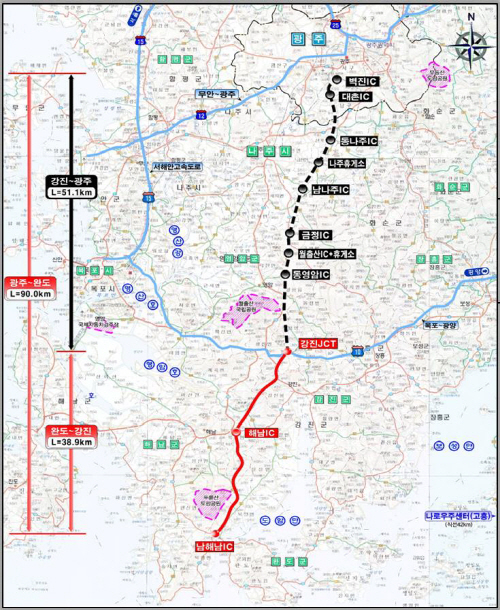 올해 완공되는 노선은 광주시 서구 벽진동에서 출발해 강진군 성전면에서 남해고속도로와 분기점(JCT)으로 연결될 예정이다.