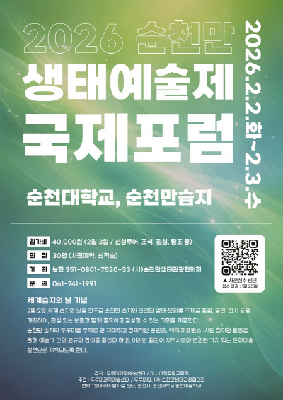 행사는 선착순 30명을 대상으로 사전예약을 통해 참여할 수 있으며, 자세한 사항은 순천만습지와 순천대학교 누리집에서 확인할 수 있다.