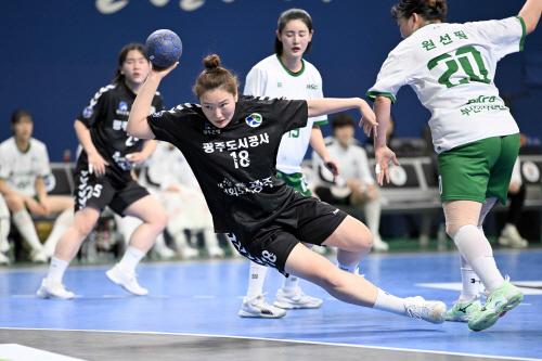 | 24일 광주빛고을체육관에서 열린 신한 SOL Bank 2025-2026 핸드볼 H리그 여자부 1라운드 4차전 경기에서 광주도시공사 연지현이 점프슛을 하고 있다. 사진제공=한국핸드볼연맹(KOHA) |