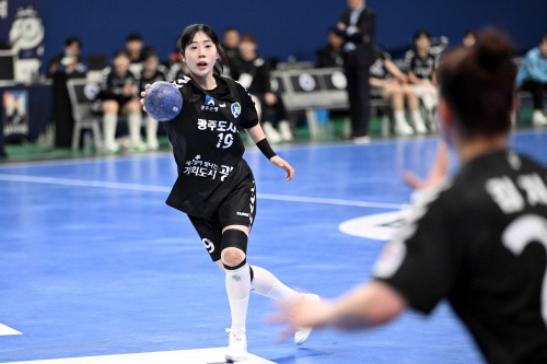 | 지난 24일 광주빛고을체육관에서 열린 부산시설공단과의 신한 SOL페이 2024-2025 핸드볼 H리그 여자부 1라운드 4차전에서 광주도시공사 김금순이 패스를 하고 있다. 사진제공=한국핸드볼연맹(KOHA) |