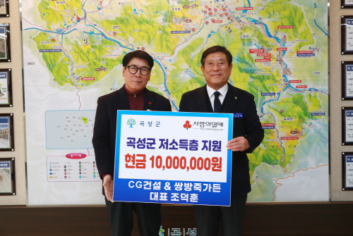 조상래 군수는 “꾸준히 나눔을 실천한 조덕훈 CG건설·쌍방죽가든 대표에게 깊이 감사하다”며 “기탁된 성금은 전남사회복지공동모금회를 통해 곡성군 저소득층 등 꼭 필요한 곳에 쓰일 수 있도록 하겠다”고 밝혔다.