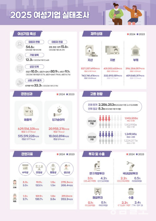 미래를 위한 투자도 활발했다. 기업당 평균 R&D 투자 금액은 3억4000만원으로 전년 대비 34.9% 급증했다. 수출 평균 금액 또한 29억원으로 11.9% 늘어 여성기업의 글로벌 시장 진출이 확대되고 있음을 입증했다.