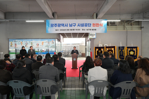 광주 남구는 2일 청사 별관에서 김병내 남구청장을 비롯한 관계자들이 참석한 가운데 광주 남구시설공단 현판식을 갖고, 공단의 성공적인 출범을 대외적으로 공식화했다.