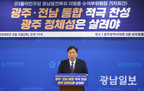 이 수석부위원장은 3일 광주시의회 브리핑룸에서 기자회견을 갖고 “통합 과정에서 광주의 역사성과 도시 정체성이 제도적으로 명확히 보장돼야 한다”고 밝혔다.