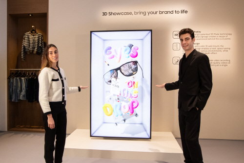 삼성 스페이셜 사이니지는 삼성전자의 독자 기술인 ‘3D 플레이트’를 적용해 별도의 안경이나 두꺼운 홀로그램 박스 없이도 입체감을 선사한다.