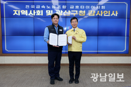 금호타이어 노동조합이 광주공장 화재 대응 과정에서 신속한 행정 조치와 지역사회 연대에 나선 광주 광산구에 감사의 뜻을 전했다.