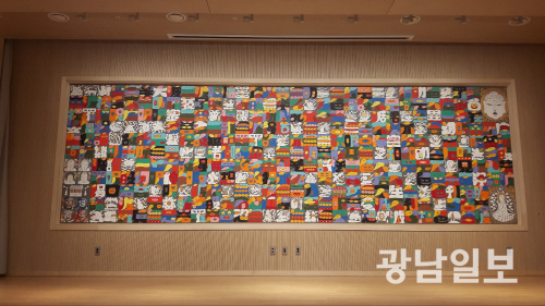 아울러 평면분할된 사각형에는 물고기와 새, 집, 여자, 눈 등이 축소 배치돼 안정감과 다양한 스토리를 구현해냈다. 이를테면 하나의 이미지가 개체이면서 전체가 되고, 수많은 전체가 또다시 하나가 되는 순환고리가 매우 경쾌하고 리드미컬하게 표현돼 흥미를 유발했다는 점에서 형식적 다양성은 물론 내용적 깊이까지 더했다.
