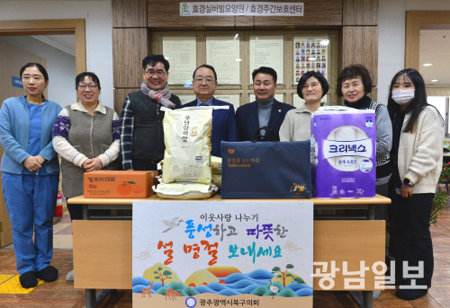 | 광주 북구의회는 최근 병오년 설을 맞아 지역 사회복지시설을 방문해 위문품을 전달하며 지역 주민과 따뜻한 정을 나눴다. |