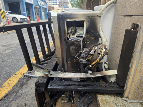| 16일 오전 8시26분 광주 동구 금남로5가 한 상가에서 불이 나 데크, 에어컨 실외기 등이 소실됐다. 사진제공=광주 동부소방서 |