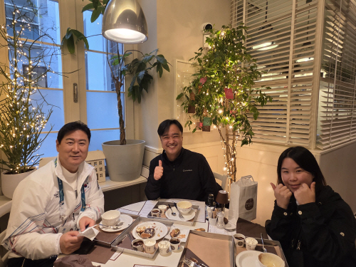| 이승재 목포대학교 교수가 ‘2026 밀라노·코르티나담페초 동계 올림픽’ 현장에서 피겨 국가대표 이해인(21)의 개인 트레이너로 컨디션 관리와 경기력 향상을 지원했다. 왼쪽부터 송진호 전남도체육회장, 이승재 교수, 한수진 학생. 사진제공=전남도체육회 |
