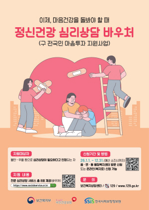 배강숙 시 건강위생과장은 “심리적으로 도움이 필요한 시민의 마음건강을 돌보고 정신질환을 예방하기 위해 정신건강 심리상담 바우처사업을 운영하고 있다”며 “이 사업을 통해 어려움을 겪는 시민들이 도움을 받을 수 있길 바란다”고 말했다.
