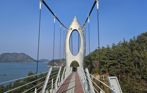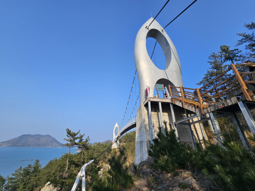 꽃섬길의 절정은 단연 ‘꽃섬다리’다. 두 개의 해안 절벽 협곡을 연결한 길이 100m, 폭 1.5m의 출렁다리는 하화도의 랜드마크다. 지상 65m 높이의 허공을 가로지르는 이 다리 위에 서면 발아래로 부서지는 파도가 아찔한 스릴을 선사한다. 다리 한가운데서 마주하는 바닷바람은 일상의 스트레스를 단번에 씻어내기에 충분하다.