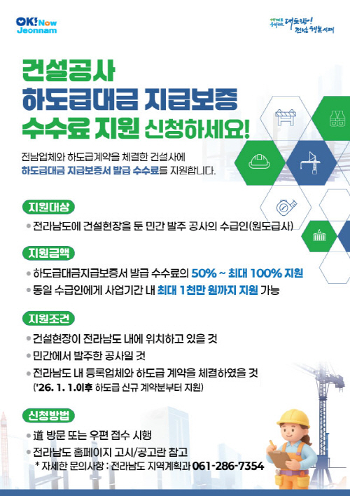 | 하도급대금 지급보증 수수료 지원 안내문. 사진제공=전남도 |