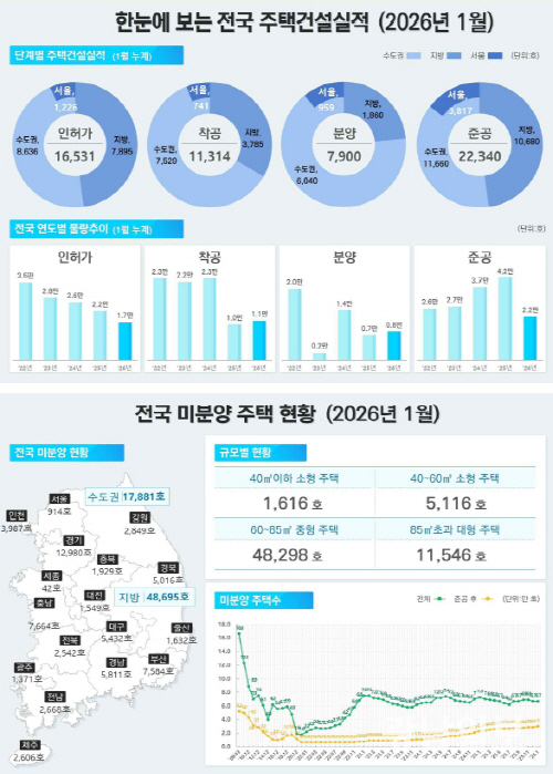 지난달 기준 전국 미분양 주택은 6만6576호로 전월 대비 0.1%(66호) 늘었다. 작년 12월 소폭 감소했다가 한 달 만에 다시 증가로 돌아섰다.