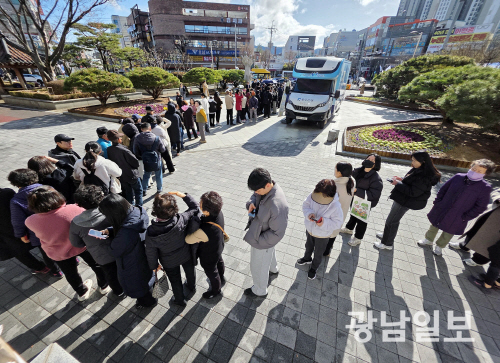 | 지난 3일 광주 북구청 광장의 부끄머니 출장버스 발급 대기 모습. 사진 제공=광주 북구 |