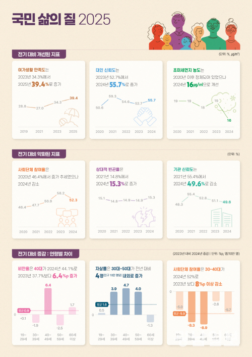 2024년 한국인의 ‘삶의 만족도’는 6.4점으로 전년과 동일했다.