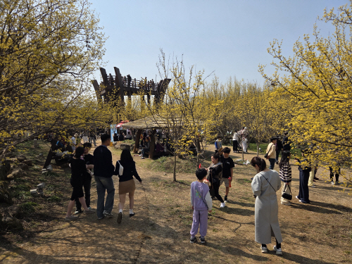 | 산수유꽃축제장서 노란 산수유꽃의 매력에 흠뻑 빠진 방문객들. 사진제공=구례군 |