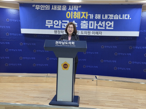 더불어민주당 이혜자 무안군수 예비후보는 이날 전남도의회 브리핑룸에서 기자회견을 열고 “검증된 행정 전문성을 바탕으로 무안의 백년대계를 완성하겠다”며 무안군수 선거 출마를 공식화했다.
