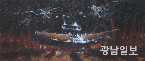 위 멘트는 지난해 7월 26일 부터 8월 3일까지 호랑가시나무 아트폴리곤에서 9년만에 인물화 개인전을 열어 관심을 받았던 조정태 작가가 올해 개인전을 앞두고 밝힌 전시 소회다. 조 작가는 지난 10일 개막, 오는 4월 30일까지 한 달간 무등현대미술관에서 개인전을 ‘명멸하는 별들에게’라는 타이틀로 갖는다. 출품작은 대작 ‘별이 된 사람들-황천귀로荒天歸路’ 등 10여점.