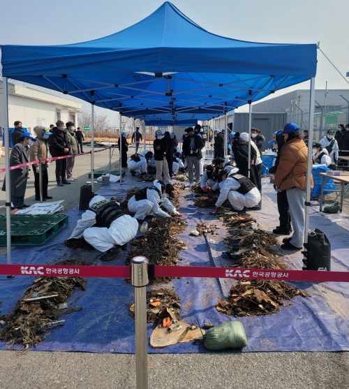 | 국토교통부 항공철도사고조사위원회(사조위)와 전남경찰청 과학수사대는 12일 무안국제공항에서 사고기 잔해물에 대한 추가 조사를 진행 중이다. 사진제공=12·29 무안공항 제주항공 여객기 참사 유가족협의회 |