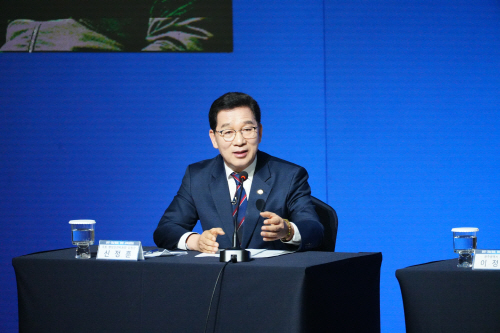 | 더불어민주당 전남광주통합특별시장 경선 후보인 신정훈 국회 행정안전위원장이 전남광주통합특별시를 에너지·AI 중심 산업도시로 육성하겠다고 밝히고 있다. |