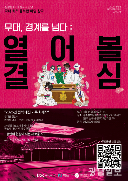 광주시립창극단의 마당 창극 ‘열어볼 결심’을 실감형 공연으로 재해석한 이번 작품은 판소리 다섯 바탕 주인공들의 후일담을 현대적 감각으로 풀어낸 창작극이다. 이번 무대에서는 원작의 예술성에 두 개의 대형 LED 화면을 활용한 AR(증강현실) 시각 요소를 결합해 관객들에게 몰입감 있는 공연 경험을 선사했다. 또, 별도로 마련된 VR 체험존에서는 메타 퀘스트 장비를 통해 XR(확장현실) 콘텐츠를 체험할 수 있도록 했다.