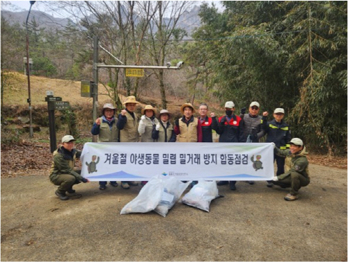 | 국립공원공단 월출산국립공원사무소는 최근 영암읍 개신리 일대에서 겨울철 야생동물 보호를 위한 밀렵·밀거래 합동단속과 불법엽구 수거행사를 실시했다. 사진제공=월출산국립공원사무소 |