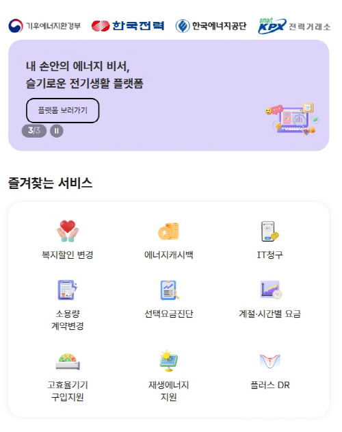 이 플랫폼은 일반 가정, 소상공인, 산업체 등 요금 절감 팁이 필요하거나 다자녀·출산 가구 및 에너지 취약계층 등 요금 지원 혜택이 필요한 모든 고객을 위해 한전, 한국에너지공단, 전력거래소 등 7개 기관에 흩어져 있던 전기 사용과 재생에너지 관련 서비스 39종을 통합했다. 서비스 정보 확인을 위해 각 기관 홈페이지를 일일이 방문해야 했던 번거로움을 획기적으로 개선했다.