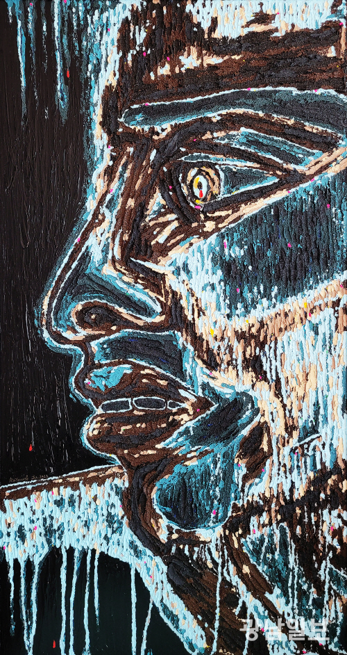 암 투병 이후 그는 확실히 그림에 대한 시각이 변했다. 칼라가 증폭한 이면에는 암 진단 이후 세 개의 장기 일부를 적출하는 등 충격이 컸던 것은 분명하다. 그리고 작품활동을 해오면서 살아온 시간에 대한 자성의 시간을 가진 듯하다. 전시장에서 만난 그는 “다 비우고 내려놓았다. 부질없다”고 들려줬다. 삶 태도의 각성이 촉발된 것이다. ‘인간’을 주제로 많이 고민을 해온 작가였다. 그런데 생명을 유지하고 있다는 것이 기적같은 일이라는 소회를 들려줬다.