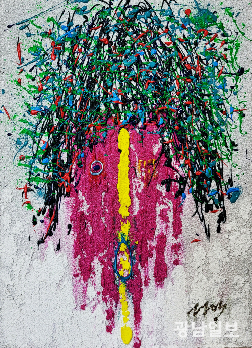 다행히 초기여서 천만다행으로 위기를 넘겼지만 ‘생명이 무엇인가’나 그 소중함 정도는 일깨우는 기회가 됐을 터다. 그의 화폭은 지금 시간이 불타오르는 듯하다. 그것은 생명에의 경외 때문이 아닐까 하는 생각이 들었다. 어찌보면 팝아트를 보는 듯도 하고, 또 다른 한편으로는 ‘무언가 사연 혹은 곡절이 있는 것은 아닐까’ 하는 믿음이 들 정도였다.