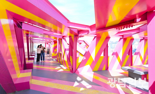 | “뷰폴리에서 광주 전경 감상하세요” 23일 오후 광주 동구 서석동 광주영상복합문화관 옥상에 설치된 ‘뷰폴리(View Folly)’를 찾은 시민들이 휴식을 취하고 있다. ‘뷰폴리’는 광주폴리Ⅲ의 대표 작품으로 건축가 문훈과 리얼리티즈 유나이티드, 팀 에들러 & 얀 에들러가 협업해 제작한 도심 속 전망과 휴식 기능을 결합한 전망대형 건축물로 시민들에게 일상 공간에서 새로운 시각적 경험을 제공하는 도시 재생형 공공건축물이다.그동안 ‘뷰폴리’는 안전한 운영을 위한 인력배치가 어려워 시민 출입이 제한됐으나 광주 동구가 4개월간 운영 인력을 지원하기로 하면서 한시적 개방 운영한다.개방 시간은 월요일부터 금요일까지, 오후 2시부터 오후 6시까지다.최기남 기자 bluesky@gwangnam.co.kr |