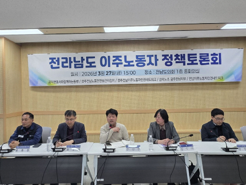 또 “전남도는 임금기준 완화, E-9조선업쿼터 신설, 근무처변경 제한, 고용비율 비자별 별도 산정 등을 추진했다”며 “민간 주도 이주노동자 공급은 브로커가 개입할 여지만 늘리는 결과를 초래한다”고 강조했다.