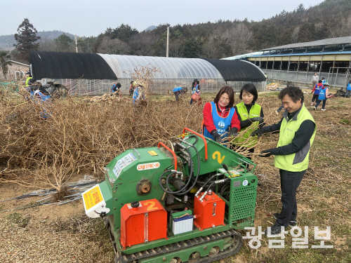 이날 일손돕기에는 농협 전남본부와 강진군농협, 농가주부모임 전남도연합회 등 50여명이 참여해 고춧대 등 영농부산물을 파쇄하는 작업을 도왔다.