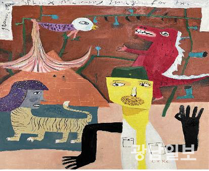 명확하게 설명되지 않는 이 작가의 작업은 익숙한 형태를 기반으로 하지만 어딘가 비틀려 있으며, 인물과 동물은 현실과 허구의 경계 위를 유영하며 화면 안에서 독특한 장면들을 만들어낸다. 강렬한 색채와 거친 붓질, 의도적으로 왜곡된 형상은 관람자로 하여금 ‘이해’ 이전에 ‘감각’으로 작품에 접근하도록 이끈다.