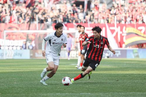 | 하나은행 K리그1 2026 5라운드 경기에서 광주FC 유제호가 경합을 벌이고 있다. 사진제공=광주FC |