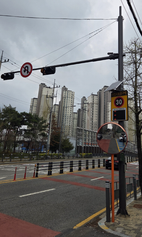 그 결과 지난 1일 해당 구간에 학교 앞(어린이보호구역) 30㎞ 속도제한 표지판 설치, 운전자의 자발적 감속을 유도하는 ‘스피드 디스플레이(실시간 속도 표시 장치)’를 설치했다.