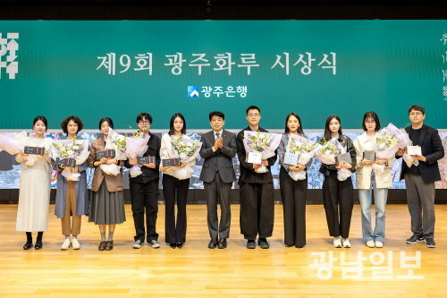 광주은행은 지난 8일 본점에서 정일선 광주은행장과 고광완 광주시 행정부시장, 이이남 작가 등이 참석한 가운데 ‘제9회 광주화루 공모전’ 시상식을 개최하고 전시 개막을 알렸다.
