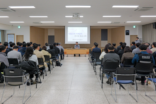 | 광주 남부경찰은 9일 5층 회의실에서 지역 경찰들을 대상으로 관서장 중심교육을 실시했다. 사진제공=광주 남부경찰서 |