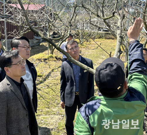 | 농협중앙회는 최근 전남 영암군과 장성군 일대 과수 재배 농가를 찾아 기온 급강하에 따른 피해 예방 실태를 점검했다. |