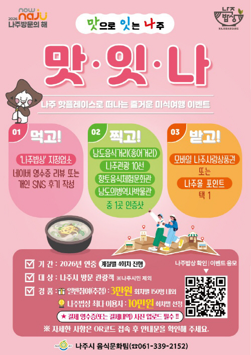 | 나주시가 ‘2026 나주방문의 해’를 맞아 진행하고 있는 미식 이벤트 ‘맛잇나’ 포스터. 사진제공=나주시 |