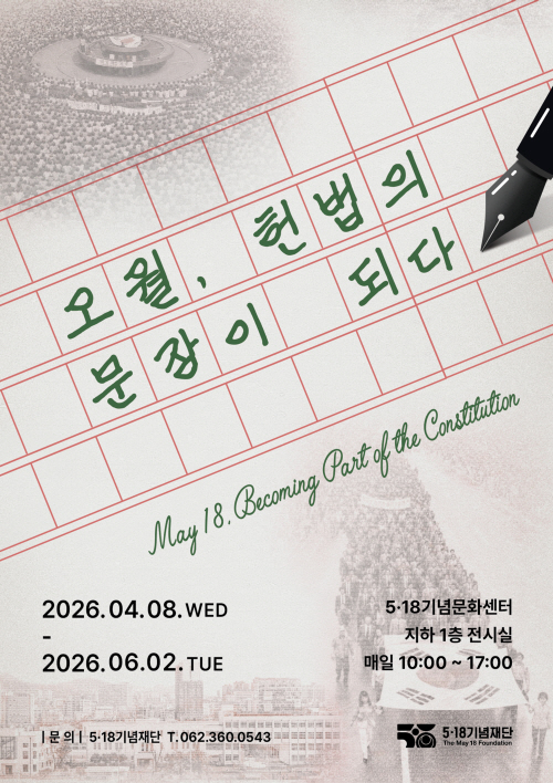 5·18기념재단은 오는 6월2일까지 광주 서구 쌍촌동 5·18기념문화센터 지하 1층 전시실에서 ‘오월, 헌법의 문장이 되다’를 개최한다.