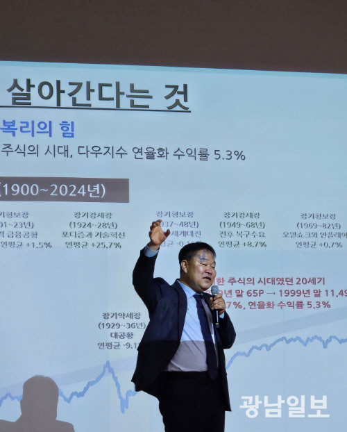 13일 한국은행 광주전남본부가 마련한 올해 첫 금융경제 강좌에서 김학균 신영증권 리서치센터장은 ‘2026년 국제 정세와 증권시장’을 주제로 강연하면서 현재의 불안한 경제 환경 속 투자 전략의 핵심으로 ‘패시브 투자’를 강조했다.