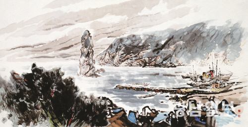 먼저 김대원 작가는 전통적인 호남 산수화에서 탈피해 현대적 감각으로 재해석한 수묵담채 실경산수를 선보인다. 캔버스와 아크릴이라는 현대적 도구를 활용하여 단순한 재현을 넘어선 ‘정신적인 풍경’을 그려낸다. ‘울릉도 포구’(1991년 작)와 ‘희월정의 솔바람’(2002년 작) 등은 그의 대담한 운필과 예술적 탐구를 잘 보여주는 대표작이다.